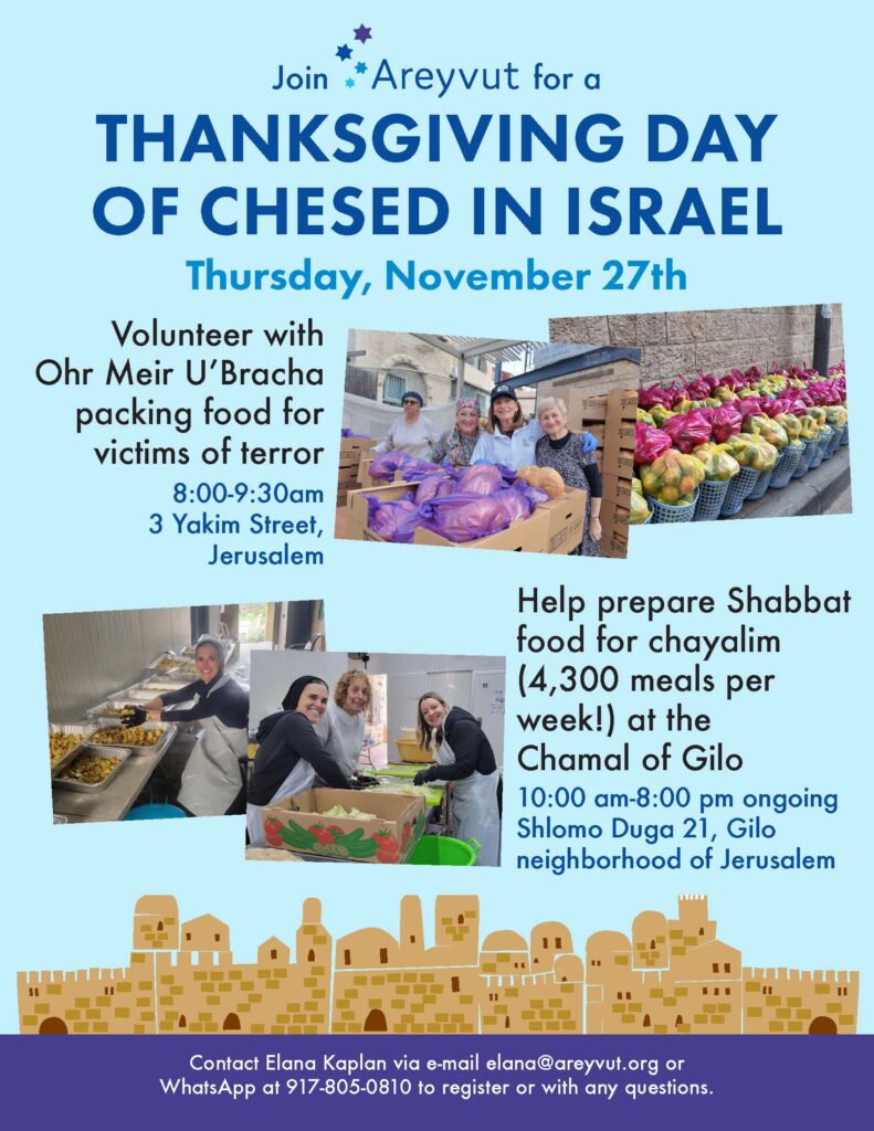 This Thanksgiving, join Areyvut for a meaningful day of gratitude, giving and hands-on chesed in Israel.